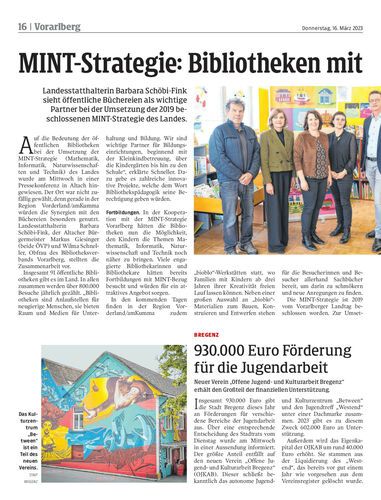 Landesstatthalterin Barbara Schöbi-Fink sieht öffentliche Büchereien als wichtige Partner bei der Umsetzung der 2019 beschlossenen MINT-Strategie des Landes.