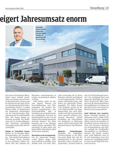 Inhaus konnte 2022 seinen Umsatz um 28 Prozent auf 94 Millionen Euro steigern. Der Großteil des organischen Wachstums kommt aus erneuerbarer Energie.