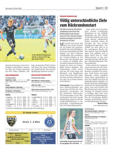 Die SPG Lustenau/Dornbirn empfängt zum Start der Rückrunde heute Sturm Graz (13 Uhr), Altach/Vorderland hat morgen um 14 Uhr Innsbruck zu Gast.