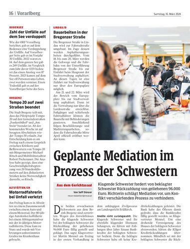 Klagende Schwester fordert von beklagter Schwester Rückzahlung von geliehenen 96.000 Euro. Richterin schlägt Mediation vor, um Konflikt verschärfenden Prozess zu verhindern.