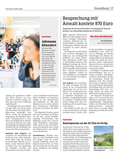 Klagender Rechtsanwalt fordert in anhängigem Honorarprozess von ehemaliger Mandantin 15.400 Euro.