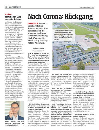 Interview. People's- Geschäftsführer Thomas Krutzler über die Coronazeit, die sinkende Nachfrage der Linienverbindung nach Wien und die Ausrichtung des Flughafens Altenrhein.