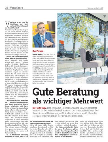 Interview. Robert Küng ist Obmann der Sparte Baustoffhandel in der Wirtschaftskammer. Der Geschäftsführer des Sanitär- und Heizungsgroßhändlers Inhaus weiß über die Herausforderungen in der Branche Bescheid.