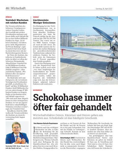 Wirtschaftsfaktor Ostern. Kärntner und Steirer geben am meisten aus. Schokolade ist das häufigste Geschenk.