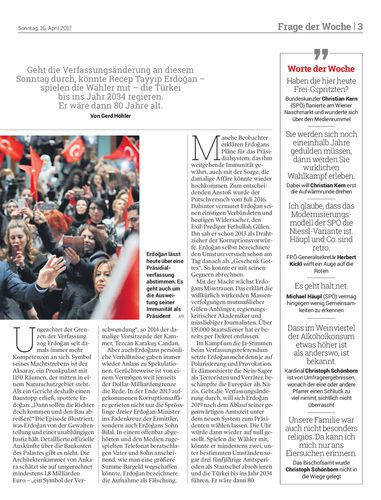 Geht die Verfassungsänderung an diesem Sonntag durch, könnte Recep Tayyip Erdoğan – spielen die Wähler mit – die Türkei bis ins Jahr 2034 regieren. Er wäre dann 80 Jahre alt. Von Gerd Höhler