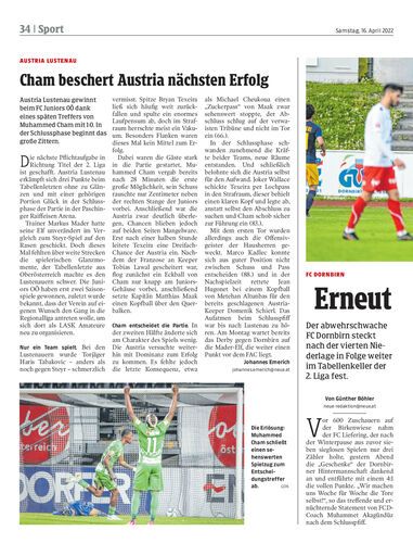 Austria Lustenau gewinnt beim FC Juniors OÖ dank eines späten Treffers von Muhammed Cham mit 1:0. In der Schlussphase beginnt das große Zittern.