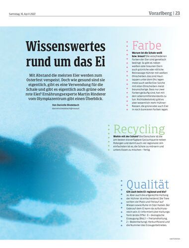 Mit Abstand die meisten Eier werden zum Osterfest verspeist. Doch wie gesund sind sie eigentlich, gibt es eine Verwendung für die Schale und gibt es eigentlich auch grüne oder rote Eier? Ernährungsexperte Martin Rinderer vom Olympiazentrum gibt einen Überblick.