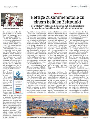 Mehr als 150 Verletzte nach Kämpfen auf dem Tempelberg. Ostern, Pessach und Ramadan fallen heuer zusammen.