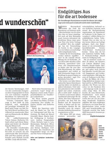 Die Vorarlberger Kunstmesse wurde für dieses Jahr abgesagt und wird auch in Zukunft nicht mehr stattfinden.