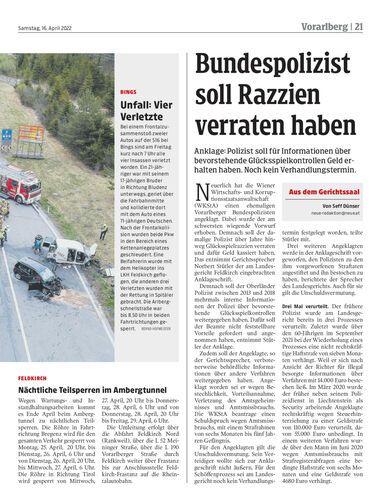 Anklage: Polizist soll für Informationen über bevorstehende Glücksspielkontrollen Geld erhalten haben. Noch kein Verhandlungstermin.