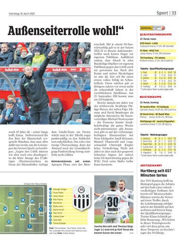 Zum Abschluss der Hinrunde in der unteren Play-off-Gruppe empfängt der SCR Altach heute (17 Uhr) den LASK, der dann in einer Woche als Gastgeber fungiert.