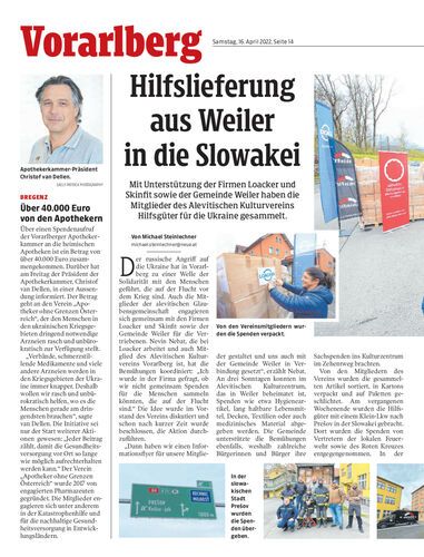 Mit Unterstützung der Firmen Loacker und Skinfit sowie der Gemeinde Weiler haben die Mitglieder des Alevitischen Kulturvereins Hilfsgüter für die Ukraine gesammelt.