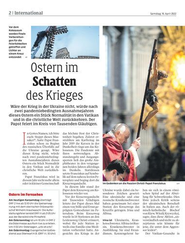 Wäre der Krieg in der Ukraine nicht, würde nach zwei pandemiebedingten Ausnahmejahren dieses Ostern ein Stück Normalität in den Vatikan und in die christliche Welt zurückkehren. Der Papst feiert im Kreis von Tausenden Gläubigen.