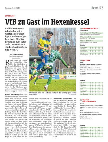 Auf Hohenems und Admira Dornbirn warten in der Westliga Auswärtsaufgaben. In der Eliteliga kommt es zum Derby zwischen den formstarken Lauterachern und Wolfurt.