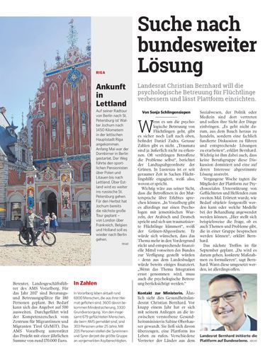 Landesrat Christian Bernhard will die psychologische Betreuung für Flüchtlinge verbessern und lässt Plattform einrichten.