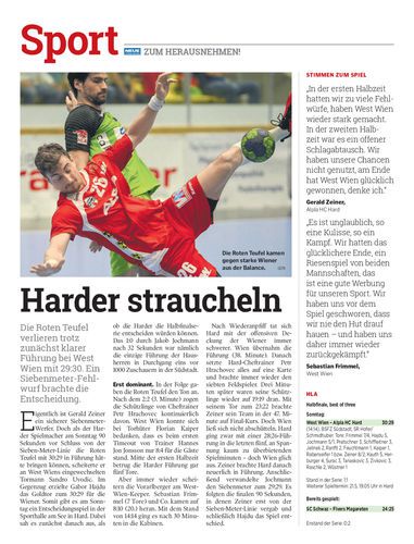 Die Roten Teufel verlieren trotz zunächst klarer Führung bei West Wien mit 29:30. Ein Siebenmeter-Fehlwurf brachte die Entscheidung.