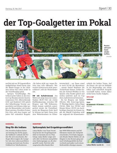 Noch-Landesligist Schwarzach empfängt heute (18.30 Uhr) im VFV-Cup-Halbfinale Titelverteidiger Dornbirn. Morgen spielt Hohenems in Bregenz.