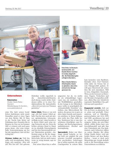 Danilo Reiter hatte eine Idee. Pakete aus Deutschland werden teilweise nur an deutsche Adressen geliefert. Reiter bringt diese Pakete von Lindau nach Dornbirn, der Besteller kann sie dort abholen. Ein Geschäftserfolg, für den Reiter gekämpft hat. Eine Idee, mit der er expandieren will.
