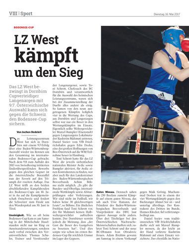 Das LZ West bezwingt in Dornbirn Cupverteidiger Langenargen mit 9:7. Österreichische Auswahl kann sich gegen die Schweiz den Bodensee-Cup sichern.