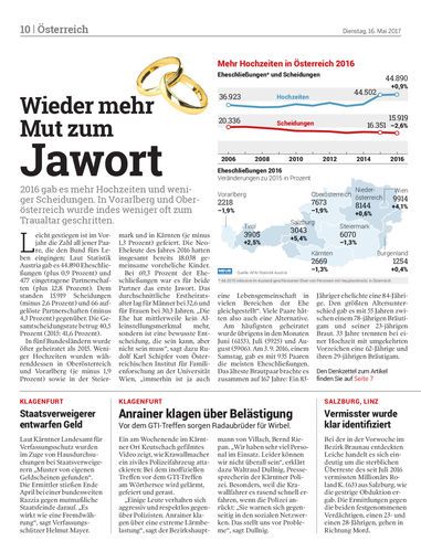2016 gab es mehr Hochzeiten und weniger Scheidungen. In Kärnten und der Steiermark wurden indes weniger Ehen geschlossen.