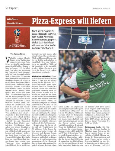 Noch steht Claudio Pizarro (39) nicht in Perus WM-Kader. Aber weil Paolo Guerrero gesperrt bleibt, darf der Mittelstürmer auf eine Nachnominierung hoffen.
