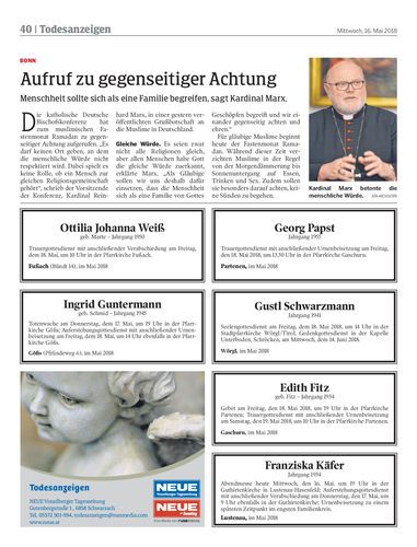 Aufruf zu gegenseitiger Achtung