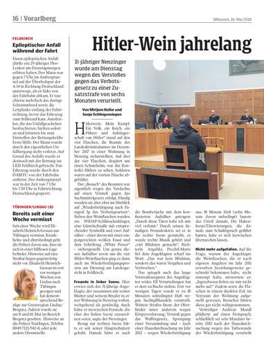 31-jähriger Nenzinger wurde am Dienstag wegen des Verstoßes gegen das Verbotsgesetz zu einer Zusatzstrafe von sechs Monaten verurteilt.