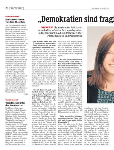 Interview. Die Innsbrucker Politikwissenschaftlerin Sabine Gatt sprach gestern in Bregenz auf Einladung der Grünen über Postdemokratie und Populismus.