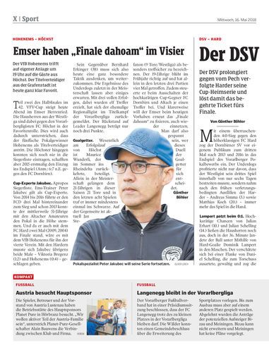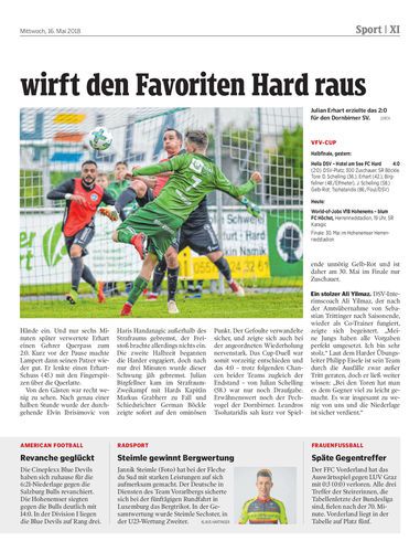 Der VfB Hohenems trifft auf eigener Anlage um 19 Uhr auf die Gäste aus Höchst. Der Titelverteidiger aus der Grafenstadt ist heute ganz klar Favorit.