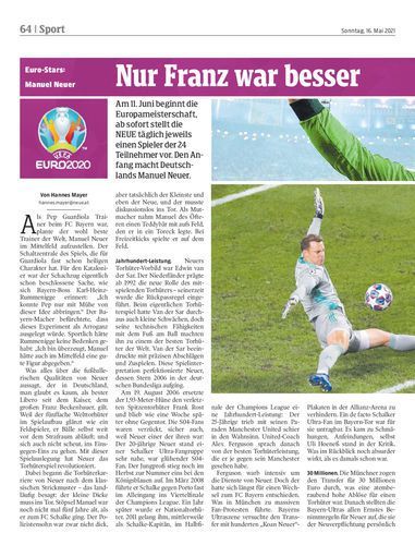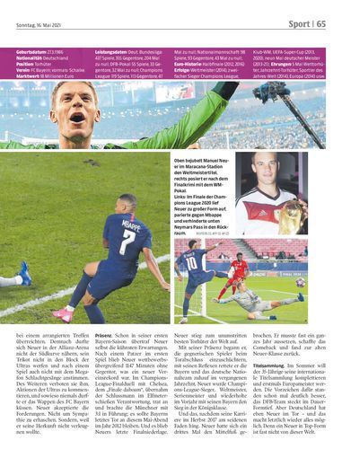 Fussball. Am 11. Juni beginnt die Fußball-Europameisterschaft. Als Vorschau auf das Großereignis porträtiert die NEUE ab sofort von jeder teilnehmenden Nation einen herausragenden Spieler. Den Anfang macht Deutschlands Manuel Neuer. Seiten 64/65