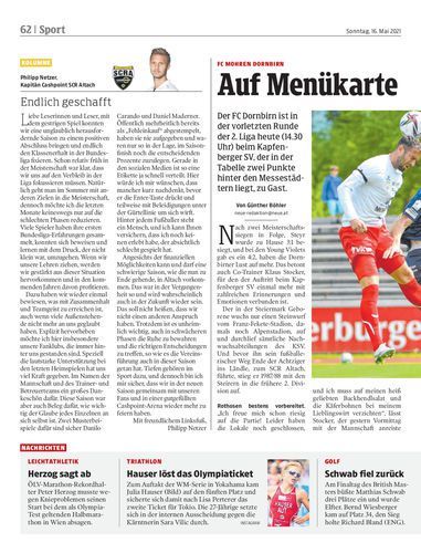 Der FC Dornbirn ist in der vorletzten Runde der 2. Liga heute (14.30 Uhr) beim Kapfenberger SV, der in der Tabelle zwei Punkte hinter den Messestädtern liegt, zu Gast.