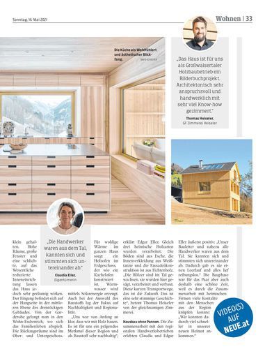 Wenn schon bauen, dann möglichst ökologisch und regional: Beim Bau des dreigeschossigen Eigenheims von Familie Eller in Blons wurden drei verschiedene heimische Holzarten verarbeitet.