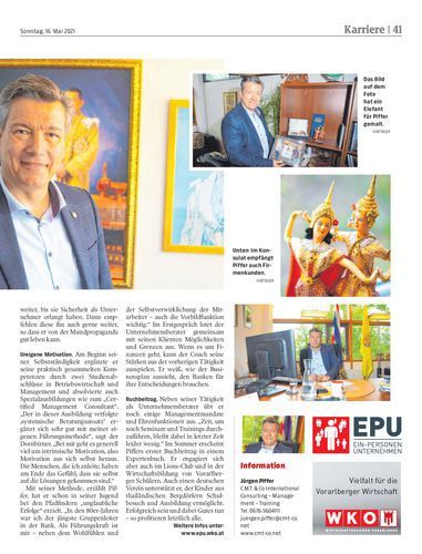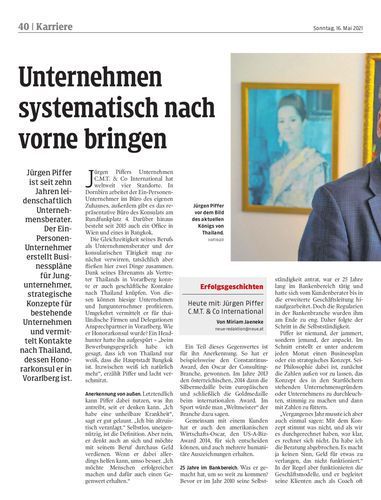 Jürgen Piffer ist seit zehn Jahren leidenschaftlich Unternehmensberater. Der Ein-Personen-Unternehmer erstellt Businesspläne für Jungunternehmer, strategische Konzepte für bestehende Unternehmen und vermittelt Kontakte nach Thailand, dessen Honorarkonsul er in Vorarlberg ist.