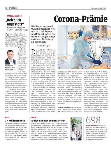 Die Regierung macht 95 Millionen Euro frei, um sich bei Ärzten und Pflegekräften für ihre Leistungen unter extremer Belastung zu bedanken.