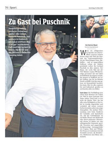 Vorarlbergs erfolgreichster Eishockeyspieler aller Zeiten, Gerhard Puschnik, hat gestern in Feldkirch ein Lokal eröffnet. Das „Carfigo“ ist Bäckerei, Cafe und Restaurant in einem. Die NEUE war am Mittwoch beim Pre-Opening dabei.