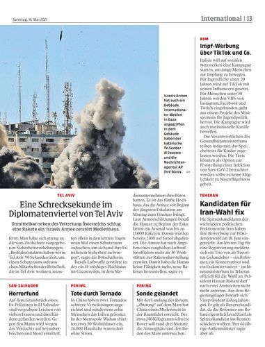 Unmittelbar neben der Vertretung Österreichs schlug eine Rakete ein. Israels Armee zerstört Medienhaus.