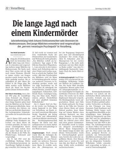 Jahrzehntelang trieb Johann Strössenreuther sein Unwesen im Bodenseeraum. Drei junge Mädchen ermordete und vergewaltigte der „pervers veranlagte Psychopath“ in Vorarlberg.