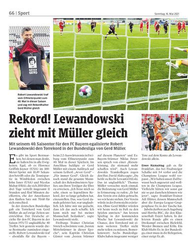 Mit seinem 40. Saisontor für den FC Bayern egalisierte Robert Lewandowski den Torrekord in der Bundesliga von Gerd Müller.
