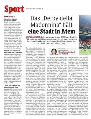 Am Schauplatz. Internazionale gegen AC Milan – Italiens Wirtschafts- und Finanzmetropole ist vor dem heutigen Rückspiel im Champions-League-Halbfinale gespalten in „Rossoneri“ und „Nerazzurri“.