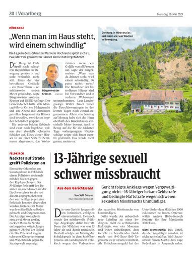 Die Lage in der Hörbranzer Parzelle Hochreute spitzt sich zu, zwei der vier geräumten Häuser sind einsturzgefährdet.