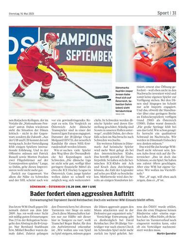 Entwarnung bei Toptalent David Reinbacher. Doch ein weiterer WM-Einsatz bleibt offen.