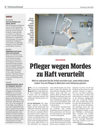Weil er verkatert bei der Arbeit erschien und „seine Ruhe haben wollte“ hat ein Pfleger in München zwei Patienten getötet.