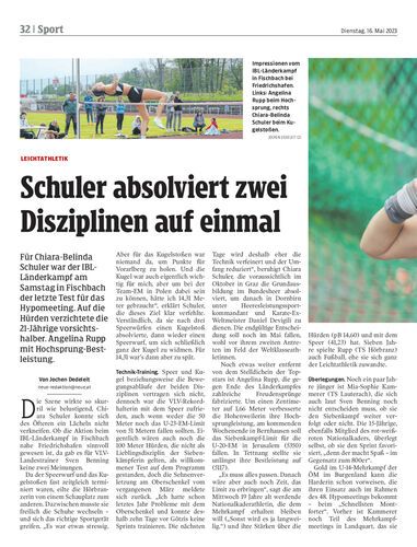 Für Chiara-Belinda Schuler war der IBL-Länderkampf am Samstag in Fischbach der letzte Test für das Hypomeeting. Auf die Hürden verzichtete die 21-Jährige vorsichtshalber. Angelina Rupp mit Hochsprung-Bestleistung.