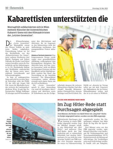 Montagfrüh solidarisierten sich in Wien mehrere Künstler der österreichischen Kabarett-Szene mit den Klimaaktivisten der „Letzten Generation“.