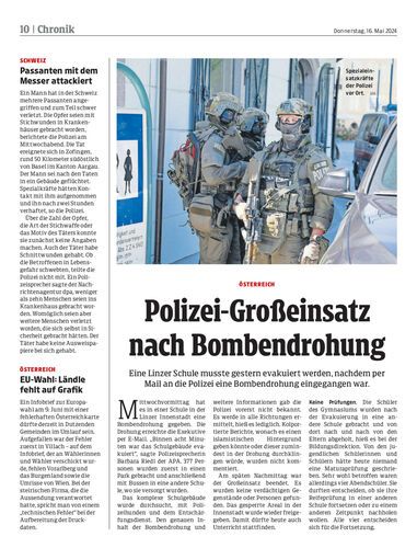 Eine Linzer Schule musste gestern evakuiert werden, nachdem per Mail an die Polizei eine Bombendrohung eingegangen war.