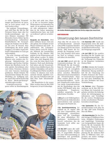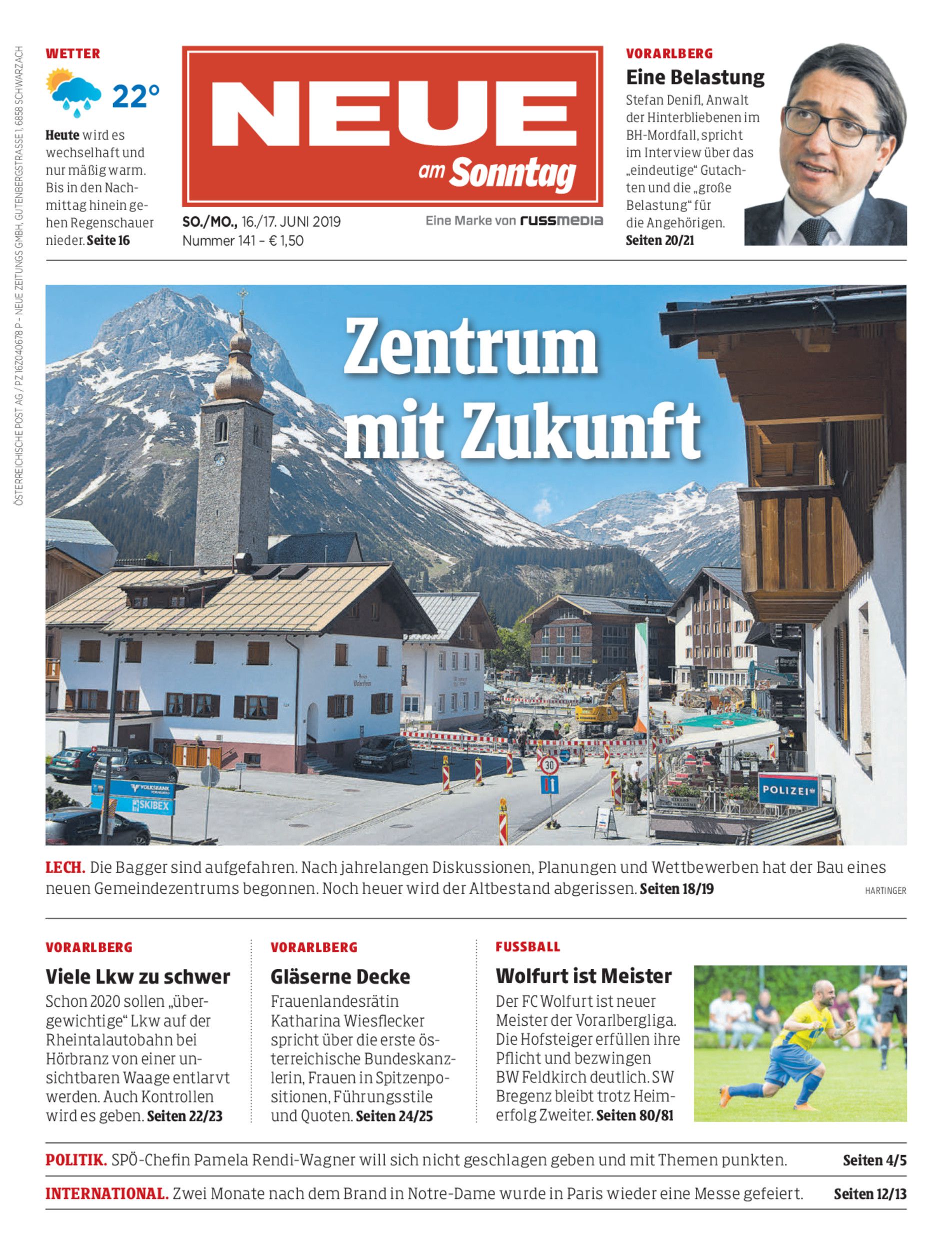 Lech. Die Bagger sind aufgefahren. Nach jahrelangen Diskussionen, Planungen und Wettbewerben hat der Bau eines neuen Gemeindezentrums begonnen. Noch heuer wird der Altbestand abgerissen. Seiten 18/19 Hartinger