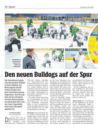 Die Dornbirner haben mit den jungen Wilden in ihren Reihen um Neuzugang Jannik Fröwis längst mit dem Sommertraining begonnen. Aufs Eis gehen sie im schweizerischen Romanshorn, wo dank Neo-DEC-Trainer Jussi Tupamäki eine neue Dynamik spürbar ist.