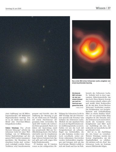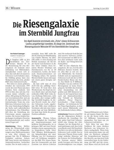 Im April konnte erstmals ein „Foto“ eines Schwarzen Lochs angefertigt werden. Es liegt im Zentrum der Riesengalaxie Messier 87 im Sternbild der Jungfrau.