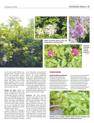 Es ist die Zeit der Auferstehung in der Natur und im Garten. Holunder, Flieder und Rosen verströmen nicht nur betörende Düfte, sondern sind auch heilsam.