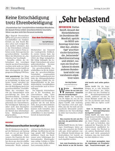 Interview. Stefan Denifl, Anwalt der Hinterbliebenen im Dornbirner BH-Mordfall, spricht im NEUE-am-Sonntag-Interview über das „eindeutige“ psychiatrische Gutachten, die „belastende“ Berichterstattung und erklärt, warum ein Strafverfahren in einem anderen Bundesland nicht von vornherein objektiver wäre.